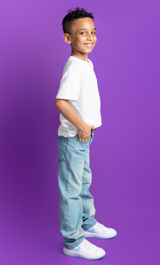 Big Boys 5 Pocket Straight Fit Jeans – Light Blue Wash with Spray (BB113 A&B)